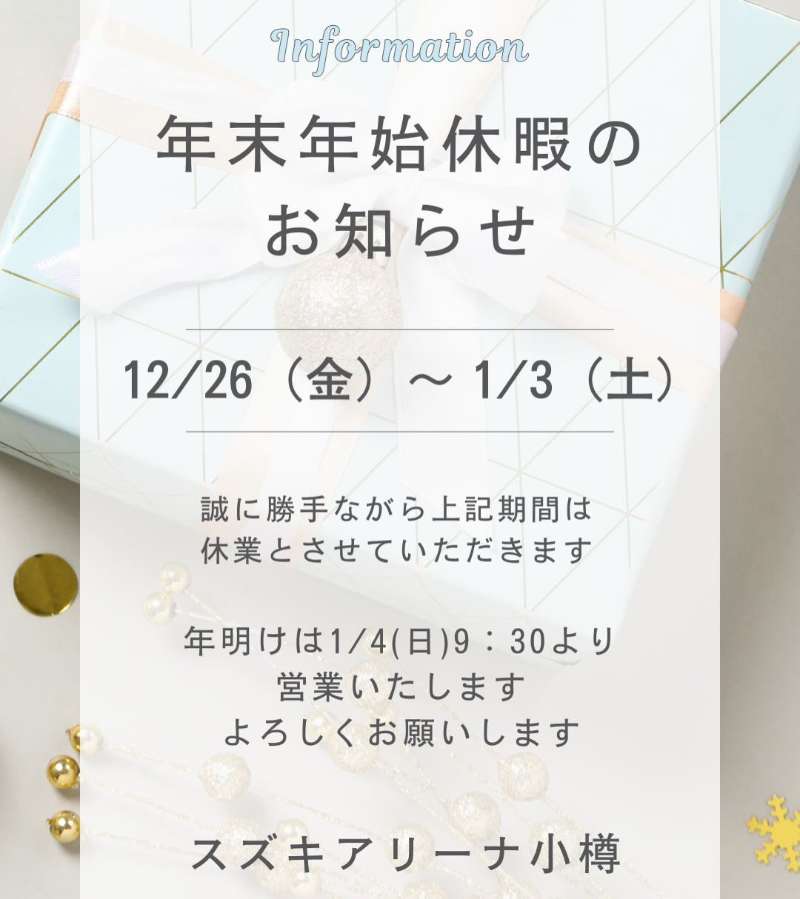 12/26(金)〜1/3(土)をお休みとさせていただきます