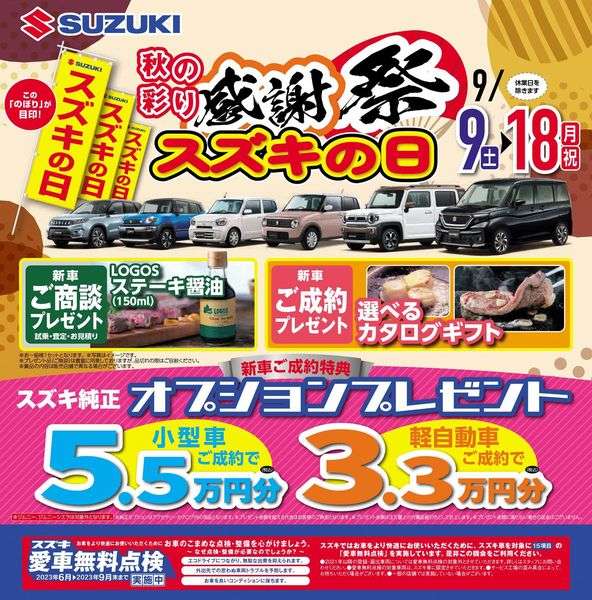 9月9日(土)から9月18日(月)まで、【秋の彩り感謝祭スズキの日】を開催中‼︎